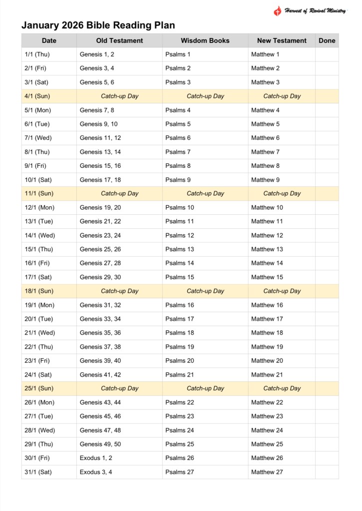 Feel free to contact us for the full document of the 2026 Bible challenge until December.